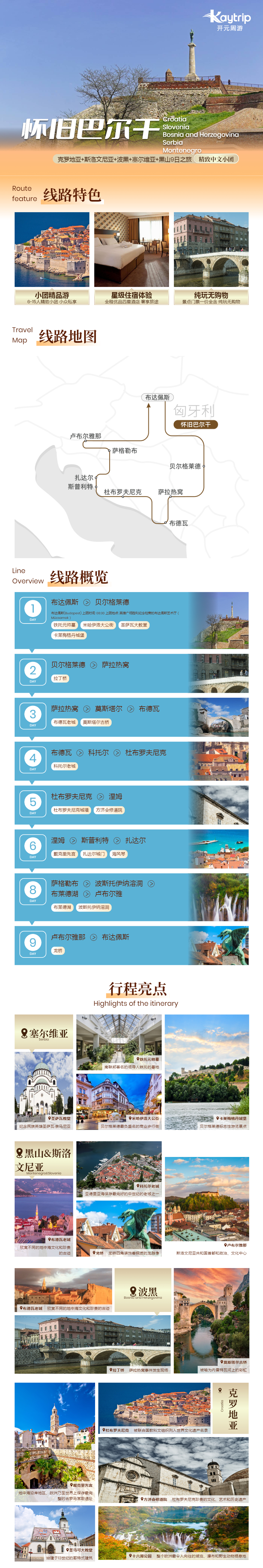 路线名称:怀旧巴尔干▪克罗地亚+斯洛文尼亚+波黑+塞尔维亚+黑山9日之旅【精致中文小团】< 布达佩斯往返 可选贝尔格莱德上>